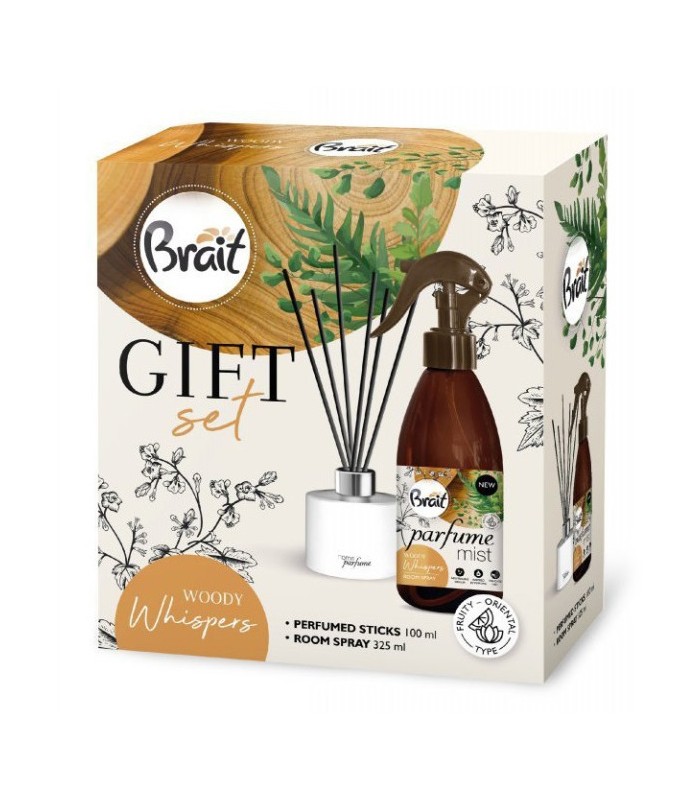 Namų kvepalų rinkinys Woody Whispers -kvapni parfumuota dulksna padeda neutralizuoti nemalonius kvapus, gaivina ir drėkina orą. Ore atsiskleidžia unikalus medienos ir aštrių kvapų mišinys papildytas subtilia citrusinių vaisių nata, persipinantčia su žaliu pačiuliu, su Geranijos lapaų ir aštrių juodųjų pipirų atspalviais, o garuojantis oro gaiviklis leidžia be pastangų mėgautis jaukiu aromatu namuose.