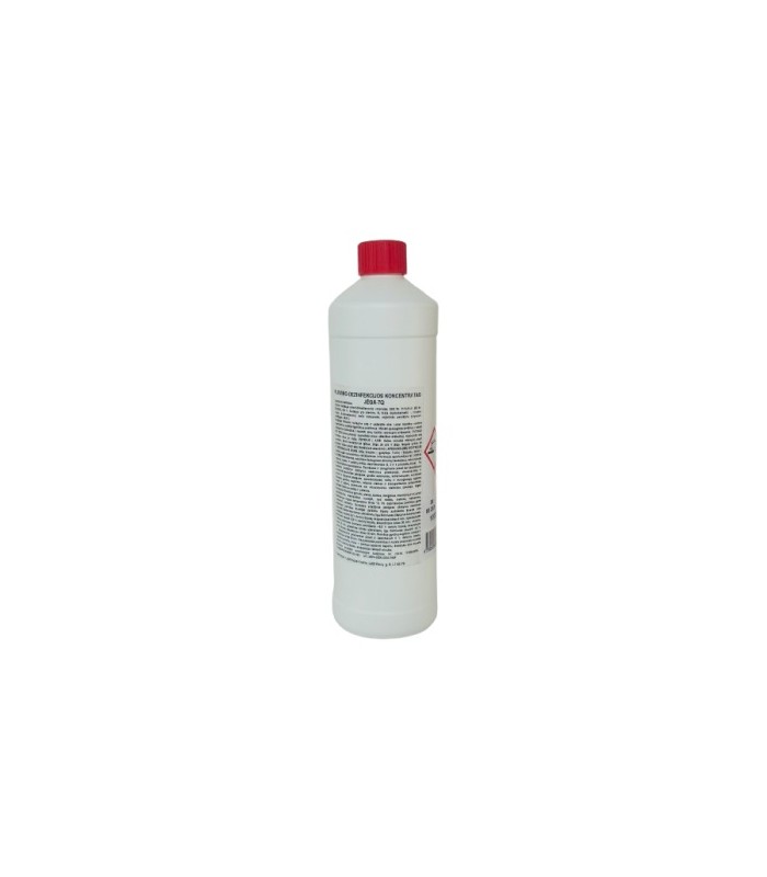 PLOVIMO-DEZINFEKCIJOS KONCENTRATAS JĖGA-7Q 1 L PASKIRTIS: Dezinfekantas, neskirtas tiesioginiam žmonių naudojimui ir maisto srities dezinfekantas (2 ir 4 produktų tipai). Tik profesionaliesiems naudotojams. Paviršiams ir įrenginiams plauti bei dezinfekuoti sveikatos priežiūros ir visuomenines paskirties įstaigose, maisto pramonės bei visuomeninio maitinimo įmonėse. Negali tiesiogiai liestis su maistu. Negali tiesiogiai liestis su maistu. Biocido autorizacijos liudijimo Nr. Nr. (10-14 17.5) BSV-20372 (A-0204PNO603071-18-179) galioja iki 2023-08-22. Sudėtis: Didecildimetilamonio chloridas, CAS Nr. 7173-51-5, EB Nr. 230-525-2; 9,9 %. Sudėtyje yra etilediaminotetraacto rūgšties tetranatrio druskos, 2-aminoetanolio, kalio karbonato, < 10 %, nejoninės paviršinio aktyvumo medžiagos, < 5 %. Savybės: Veikia baktericidiškai (Pseudomonas aeruginosa, Escheria coli, Enterecoccus hirae, Staphylococcus aureus, mikobaktericidiškai (TBC), fungicidiškai (Candida albicans ir A.brasiliensis ) ir virucidiškai. Naudoiimas: Prieš naudojimą perskaitykite naudojimo instrukciją ir saugos duomenų lapą. Sauga: Pavojinga. Smarkiai nudegina odą ir pažeidžia akis. Labai toksiška vandens organizmams, sukelia ilgalaikius pakitimus. Mūvėti apsaugines pirštines / dėvėti apsauginius drabužius/naudoti akių (veido) apsaugos priemones. PATEKUS ANT ODOS (arba plaukų): Nedelsiant nuvilkti/pašalinti visus užterštus drabužius. Odą nuplauti vandeniu arba po dušu. PATEKUS Į AKIS: Kelias minutes atsargiai plauti vandeniu. Išimti kontaktinius lęšius, jeigu jie yra ir jeigu lengvai galima tai padaryti. Toliau plauti akis. Nedelsiant skambinti į APSINUODIJIMŲ KONTROLĖS IR INFORMACIJOS BIURĄ arba kreiptis į gydytoją. Turinį / talpyklą šalinti į atliekas pagal nacionalinius reikalavimus. Atsargumo priemonės; Laikyti pašaliniams neprieinamoje vietoje, sandariai uždarytoje originalioje gamintojo pakuotėje, vėsioje vietoje. Nemaišyti su kitomis priemonėmis. Abejojant, kad biocidinis produktas gali gadinti paviršius, visada išbandyti ant nedidelio ploto. LAIKYMAS: Tinka naudoti 12 mėn. nuo pagaminimo datos. Biocidinius produktus naudokite saugiai. Prieš naudodami visuomet perskaitykite etiketę ir informaciją apie produktą.