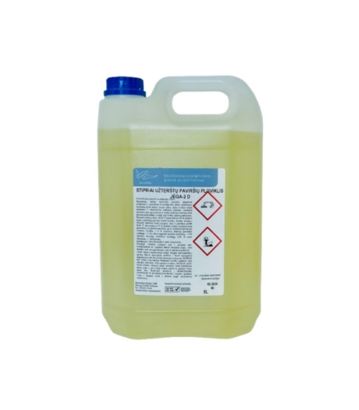 Tik profesionaliesiems naudotojams. Šarminiam poveikiui atspariems paviršiams ir įrenginiams plauti bei dezinfekuoti maisto pramonės ir visuomeninio maitinimo įmonėse. Negali tiesiogiai liestis su maistu. NAUDOJIMAS: JĖGA-2D skirtas šarminiam poveikiui atspariems įrenginiams ir paviršiams iš nerūdijančio plieno, plastmasės, keramikos plauti bei dezinfekuoti mėsos, žuvies, pieno, alaus ir kitose maisto pramonės ir visuomeninio maitinimo įmonėse, naudojant specialius putų generatorius ar rankinį plovimą. Paviršius prieš dezinfekavimą mechaniškai nuvalyti, kad neliktų matomų nešvarumų. SAUGA: Pavojinga.Biocidinius produktus naudokite saugiai. Prieš naudodami visuomet perskaitykite etiketę ir informaciją apie produktą. Smarkiai nudegina odą ir pažeidžia akis. Labai toksiška vandens organizmams, sukelia ilgalaikius pakitimus. Kontaktuodama su rūgštimis išskiria toksiškas dujas. Mūvėti apsaugines pirštines / dėvėti apsauginius drabužius/naudoti akių (veido) apsaugos priemones. Saugoti, kad nepatektų į aplinką. PATEKUS ANT ODOS (arba plaukų): Nedelsiant nuvilkti/pašalinti visus užterštus drabužius. Odą nuplauti vandeniu arba po dušu. PATEKUS Į AKIS: Kelias minutes atsargiai plauti vandeniu. Išimti kontaktinius lęšius, jeigu jie yra ir jeigu lengvai galima tai padaryti. Toliau plauti akis. Nedelsiant skambinti į APSINUODIJIMŲ KONTROLĖS IR INFORMACIJOS BIURĄ arba kreiptis į gydytoją. Turinį / talpyklą šalinti į atliekas pagal nacionalinius reikalavimus. ATSARGUMO PRIEMONĖS: Laikyti pašaliniams neprieinamoje vietoje. Nemaišyti su kitomis cheminėmis priemonėmis. Nenaudoti lengvųjų metalų (aliuminis, cinkas, varis ir kt.), dažytų paviršių plovimui ir dezinfekavimui. Abejojant, kad biocidinis produktas gali gadinti paviršius, visada išbandyti ant nedidelio ploto.